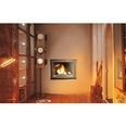В широкую панорамную распашную дверцу вставлено полукруглое стекло из жаропрочной стеклокерамики Robax®, через которое можно любоваться игрой живого пламени и следить за сгоранием дров.